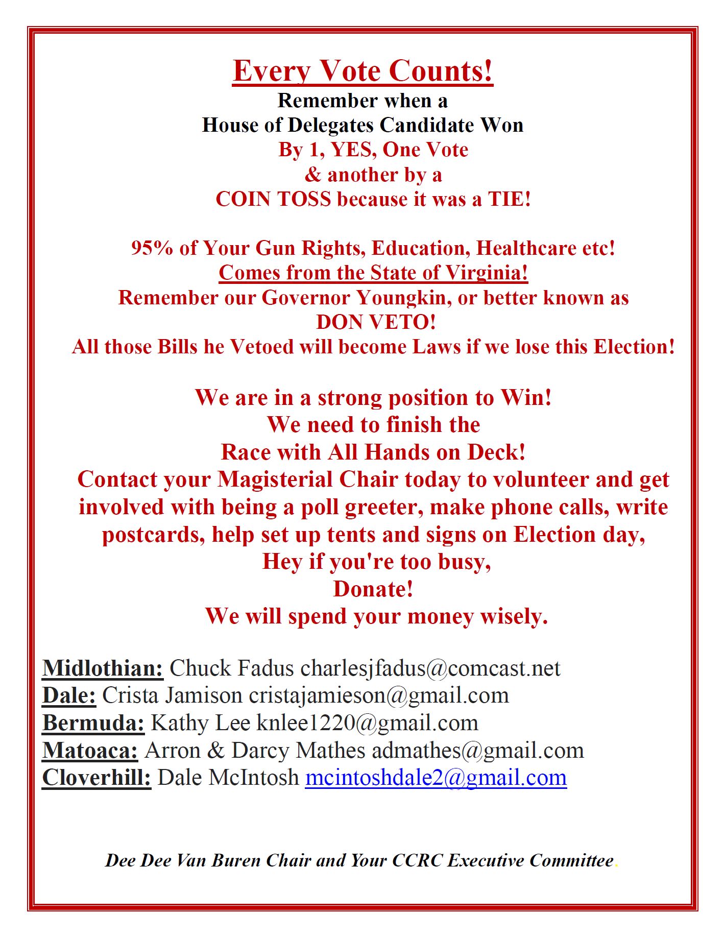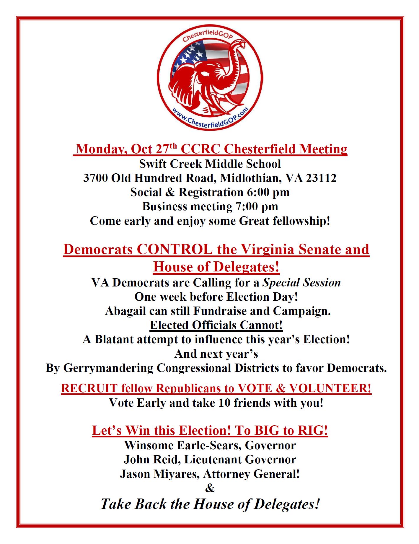 We will be conducting our next regular business meeting this Monday, October 27th 2025. This will be our last regular meeting before election day!